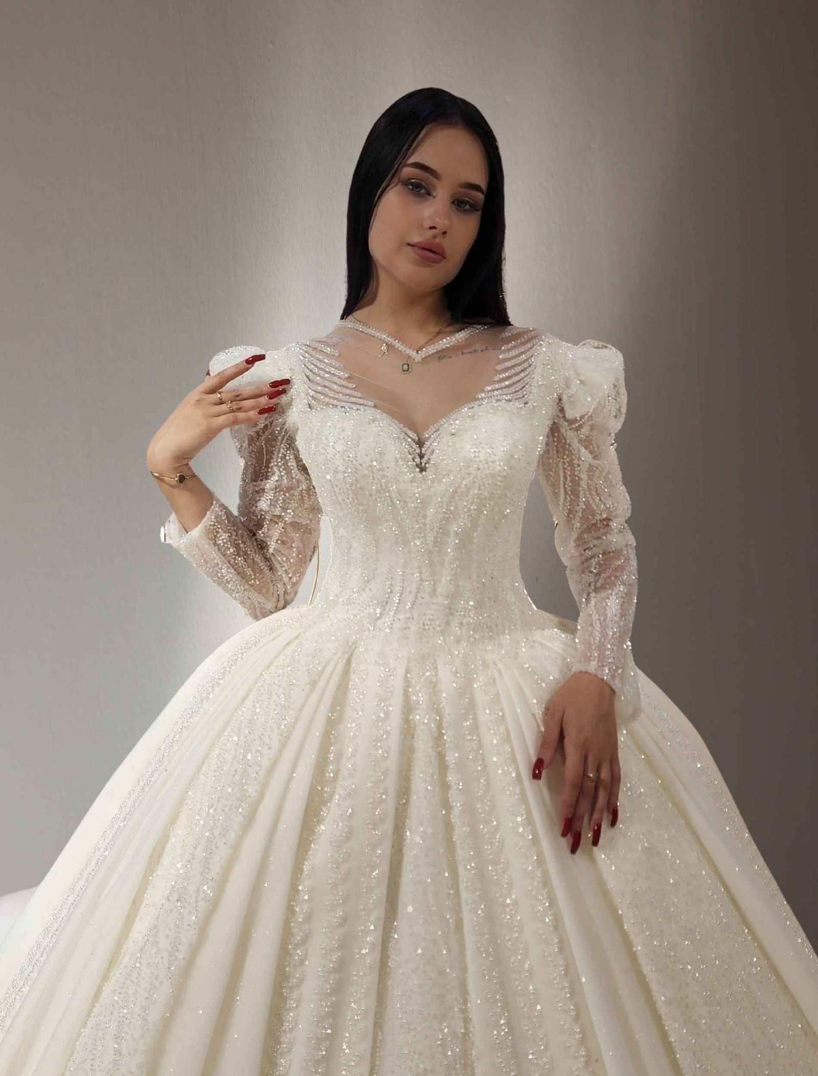 Sheer Long Sleeve Lace Wedding Ball Gown