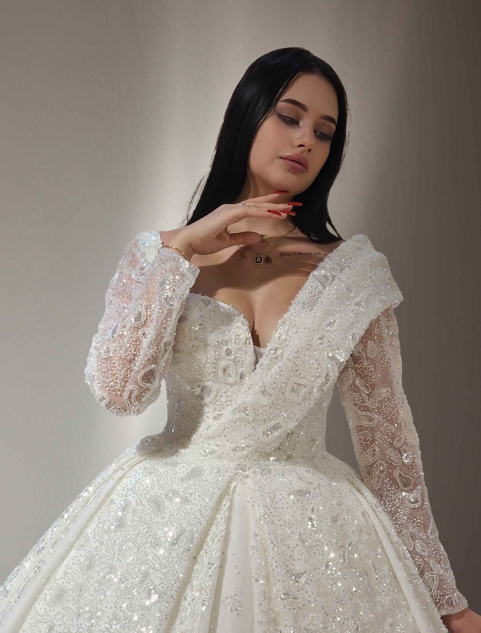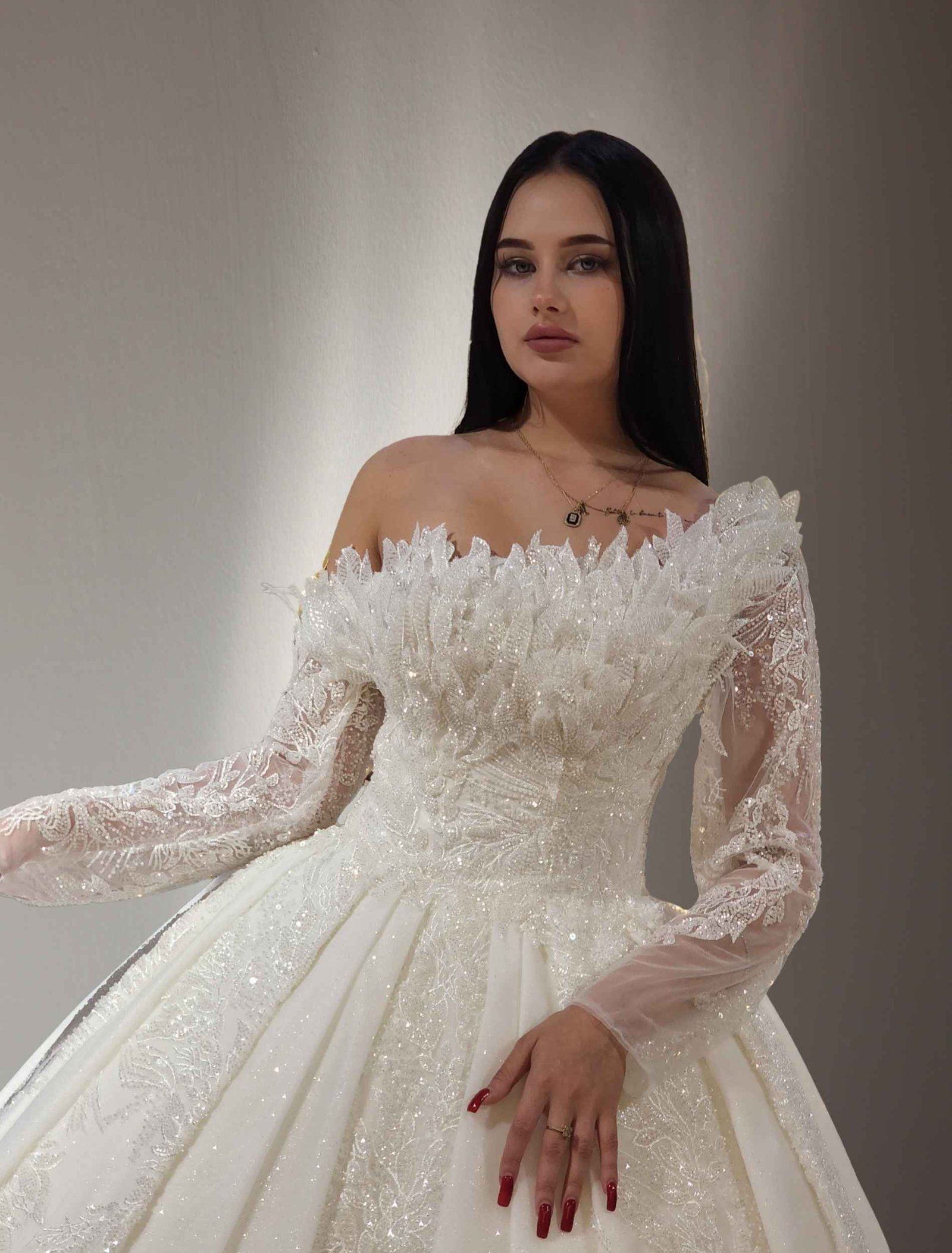 Off-Shoulder Ball Gown Wedding Dress with Long Sleeves