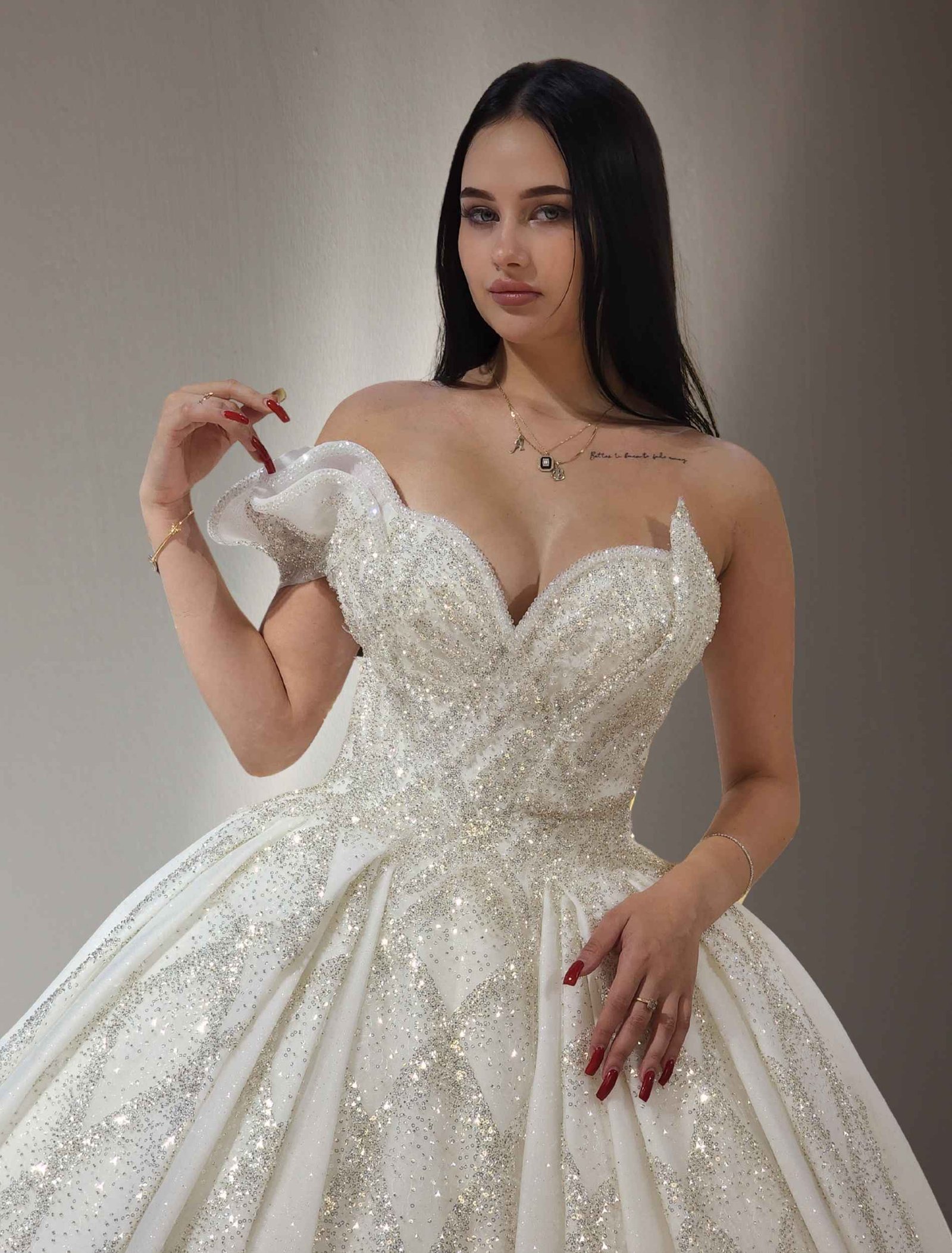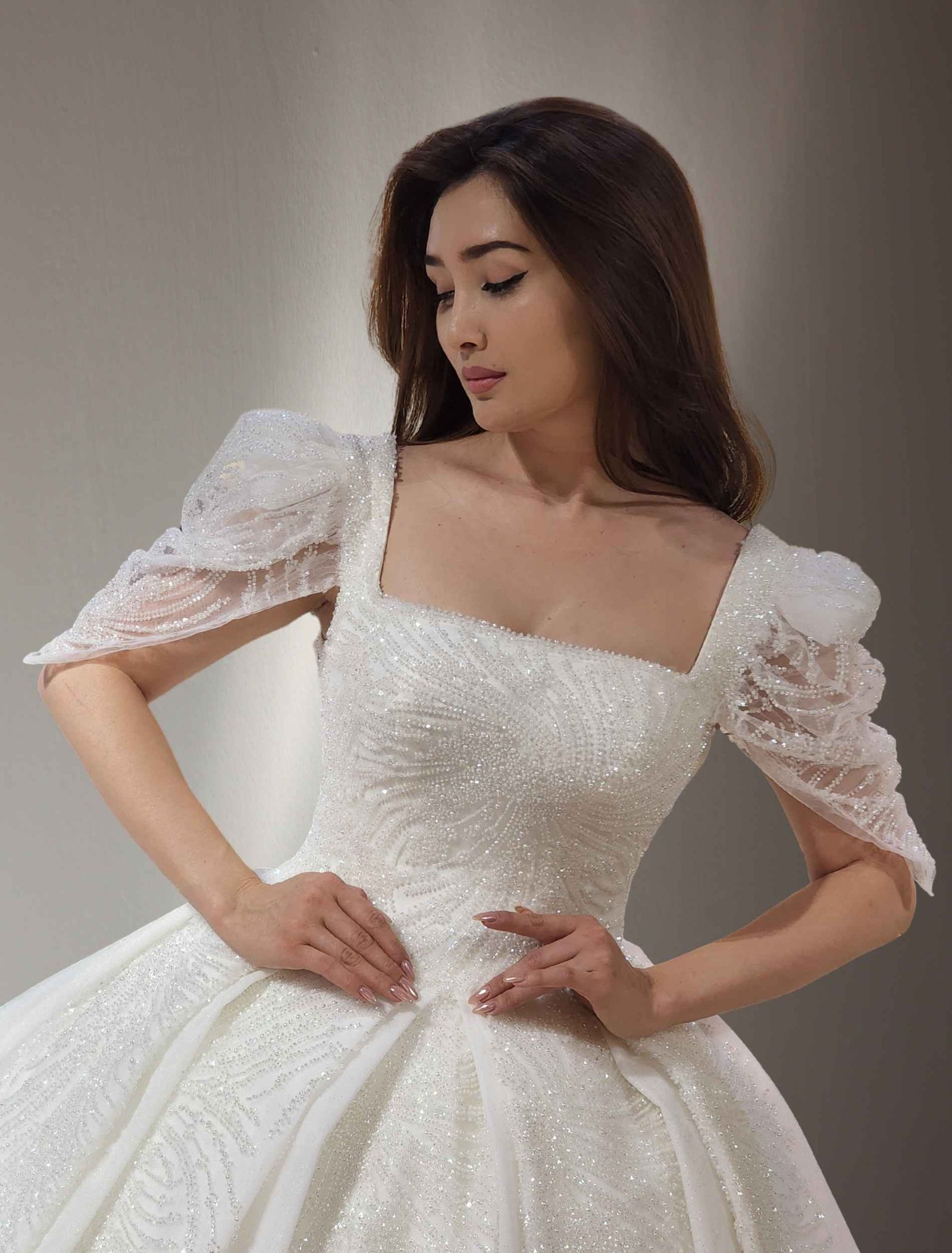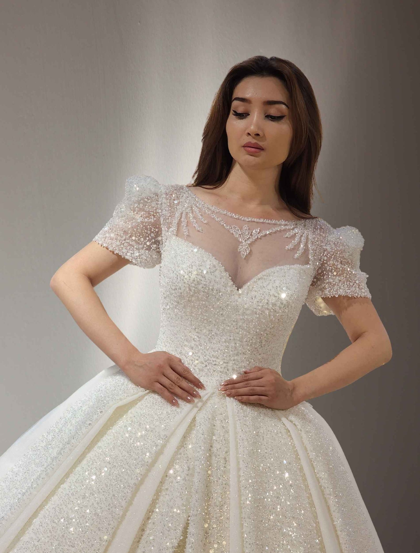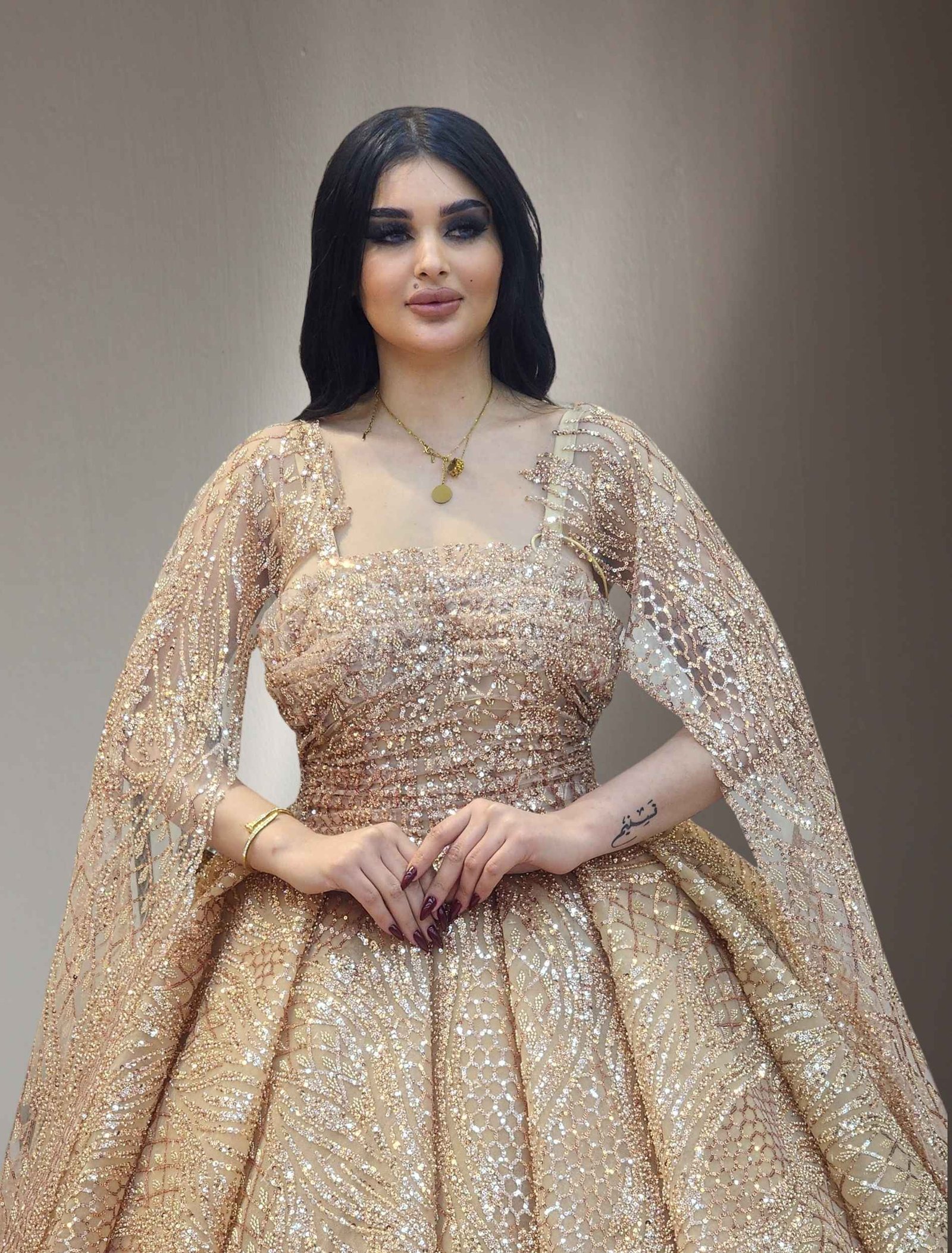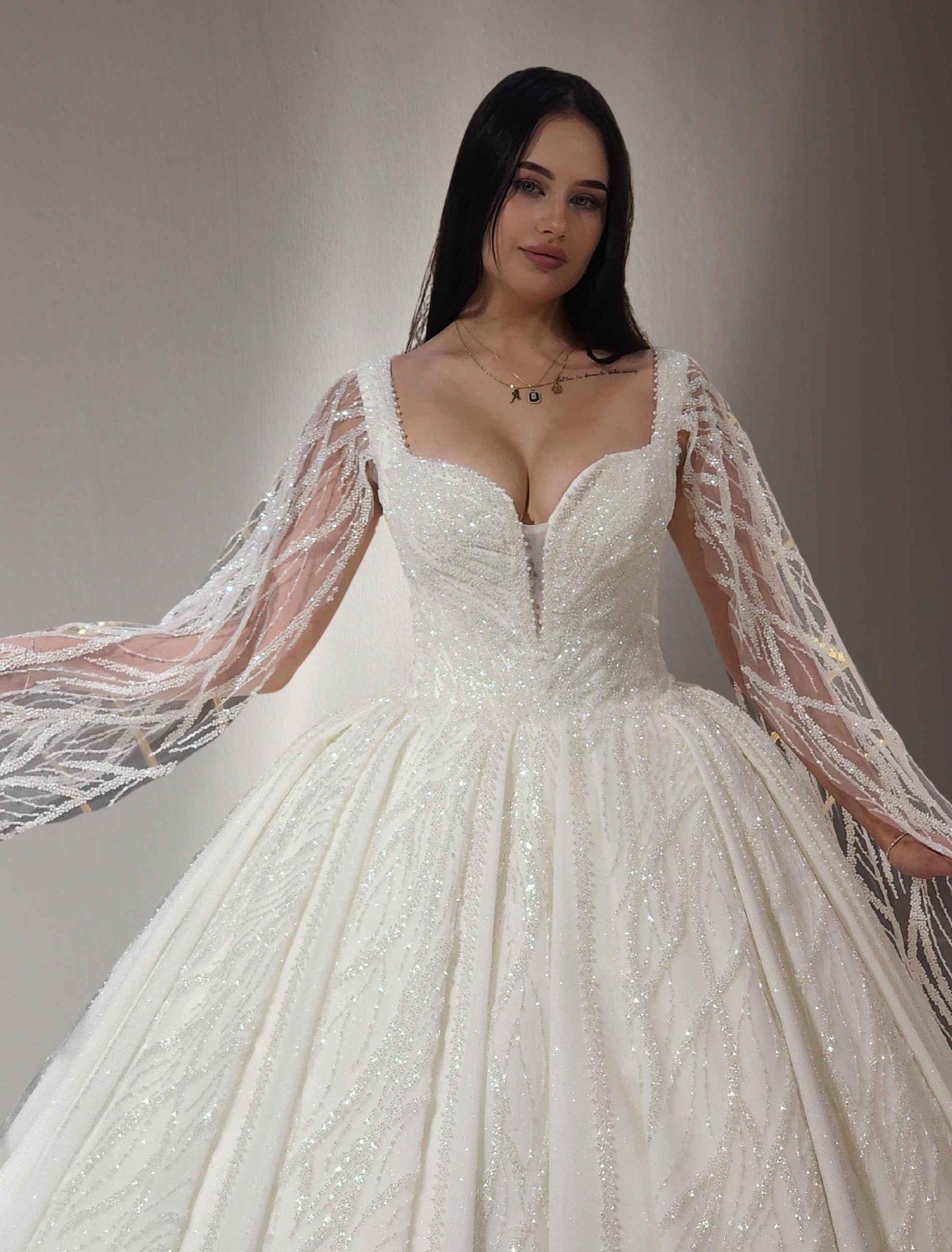 all colors, All products, dramatic sleeve, Engagement Dresses, gold, luxury ball gowns, princess-cut dress, Quinceanera dresses, squar, squined dresses