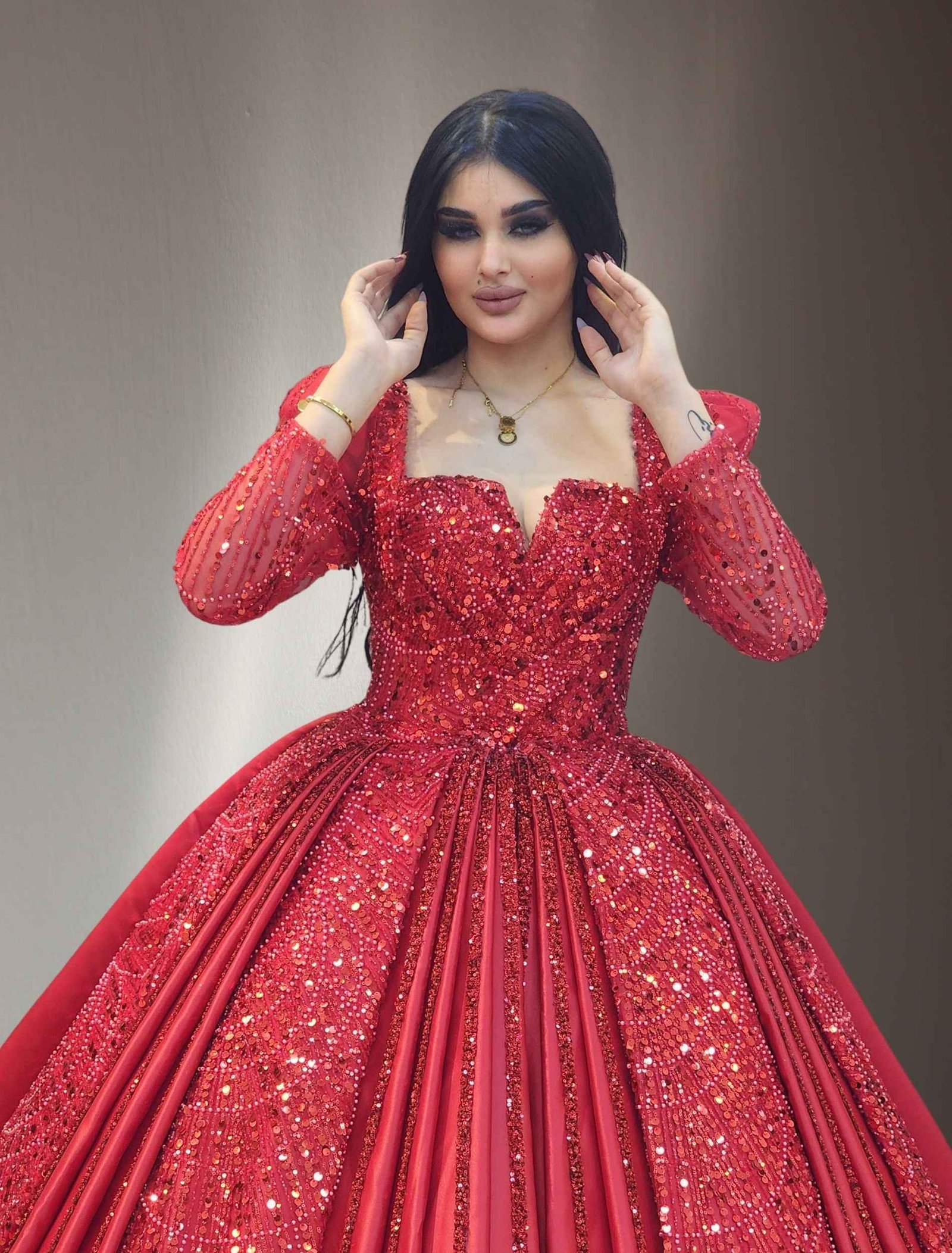 all colors, All products, Engagement Dresses, long sleeves, luxury ball gowns, Quinceanera dresses, red, squined dresses