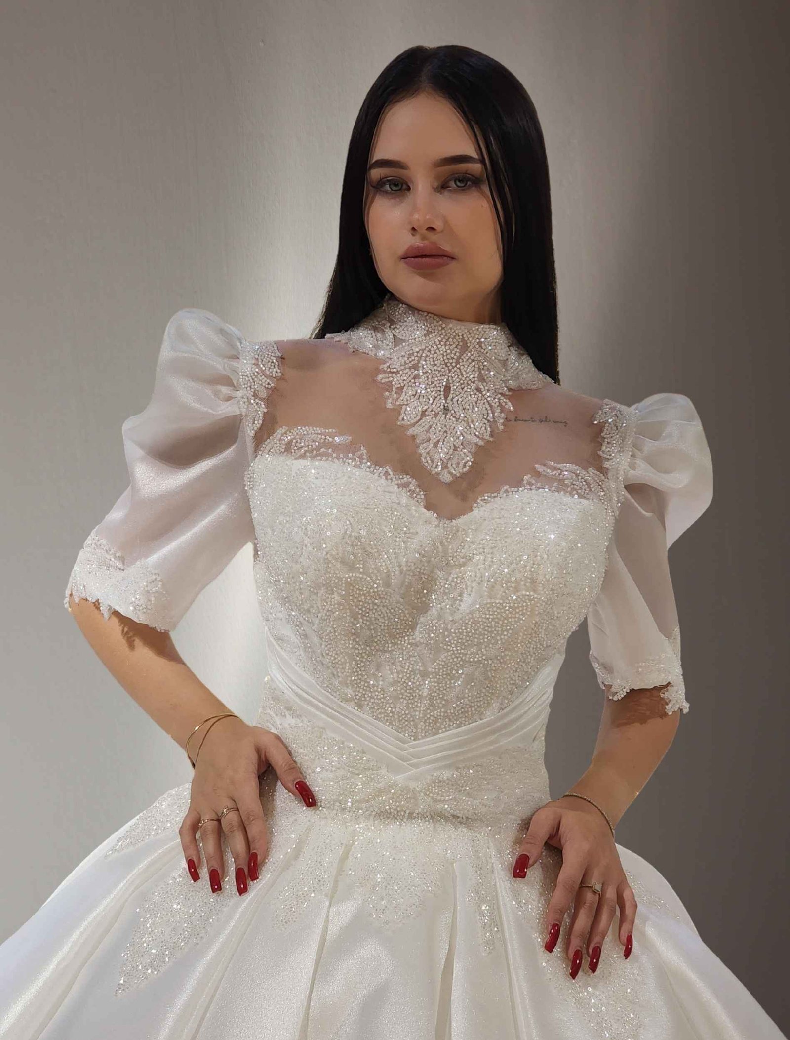 Illusion Neckline Wedding Dress – Lace Top short sleeves