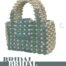 White Round beaded handbag with golden handle and chain strap with name Customization .
