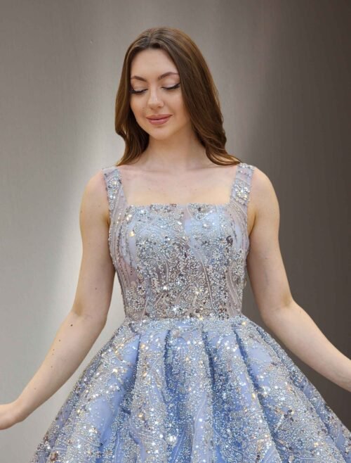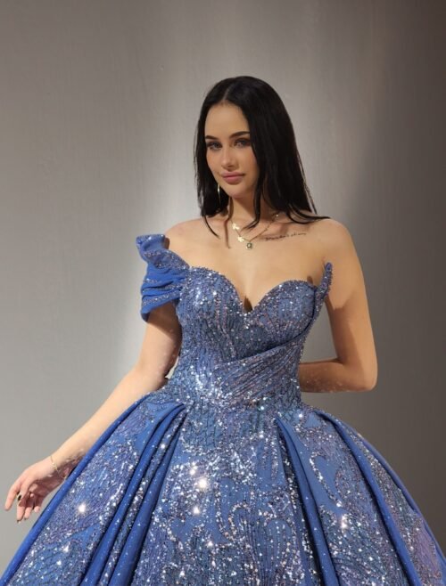 Beaded crystals sparkly ball gown blue