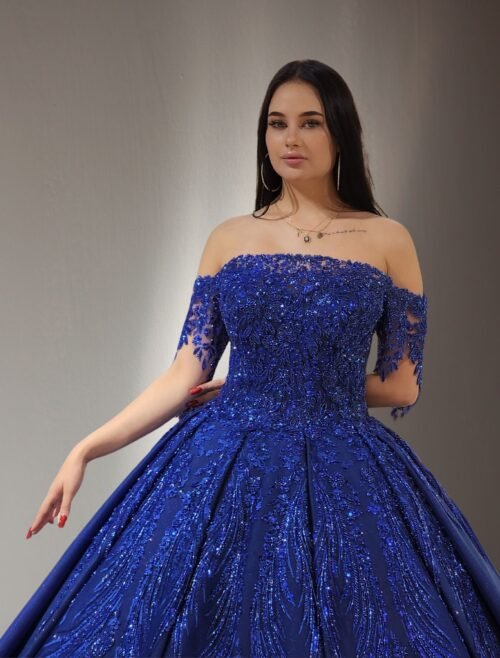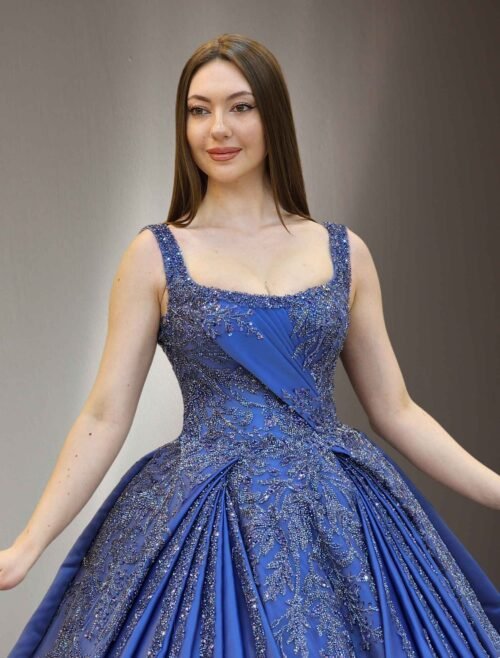 Royal Blue Pleated Sparkly Ball Gown
