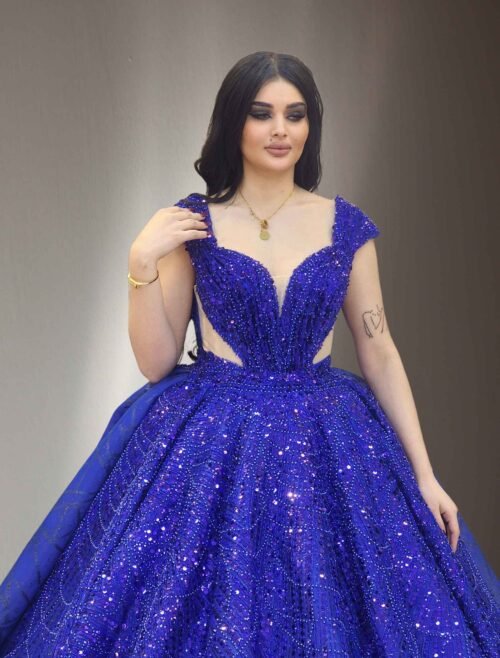 Royal Blue Sparkly Ball Gown with Deep V-Neck