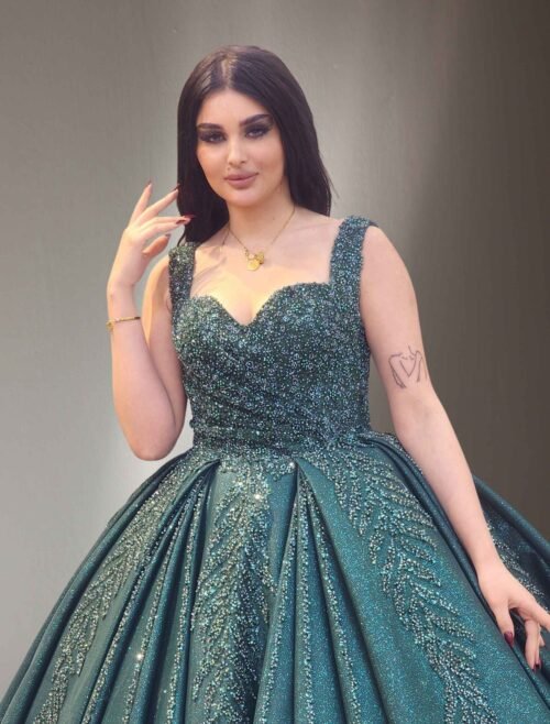 emerald green Beaded Ball Gown with Dramatic Sleeves