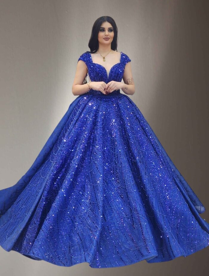 Royal Blue Sparkly Ball Gown with Deep V-Neck