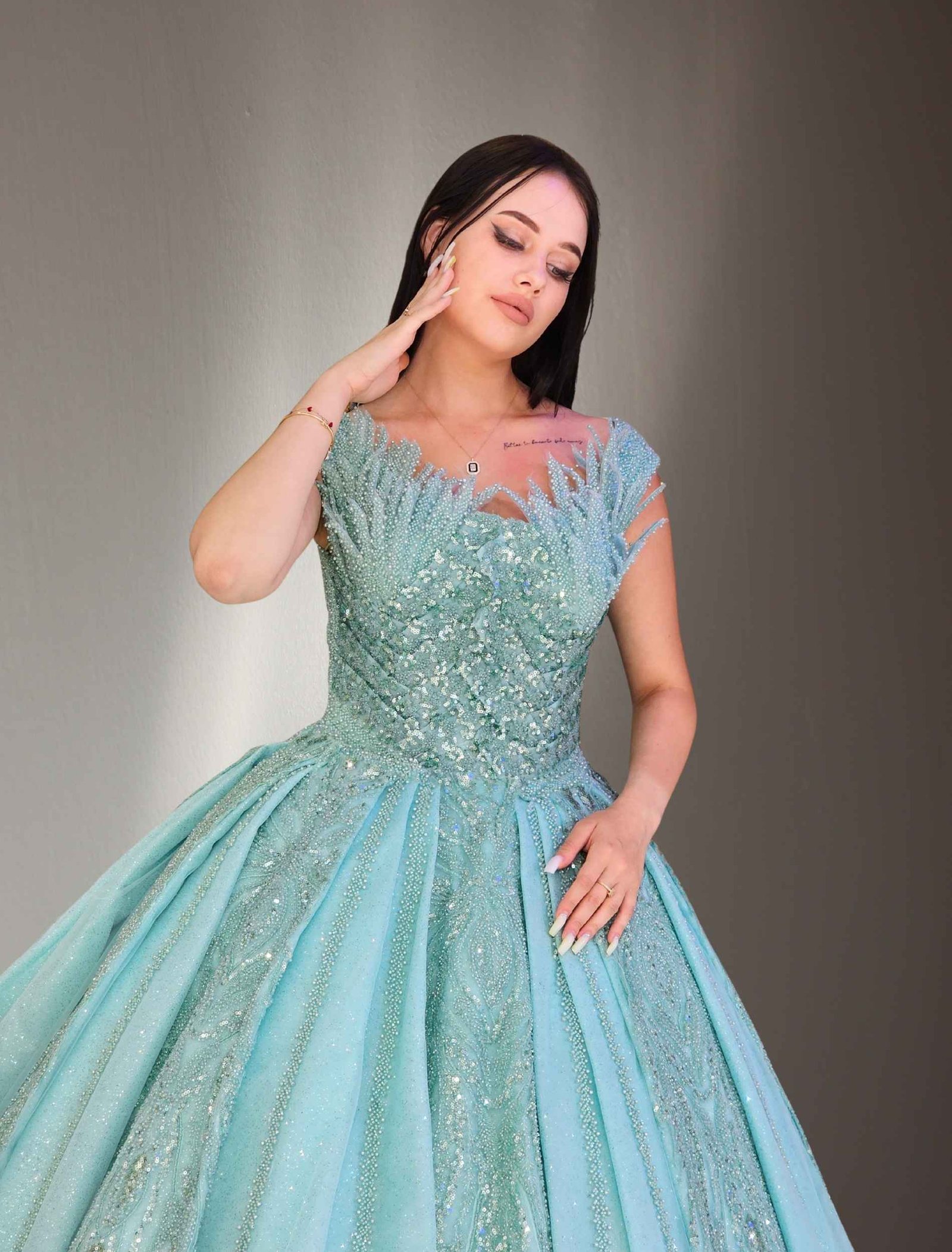 emerald green Beaded Ball Gown with Dramatic Sleeves