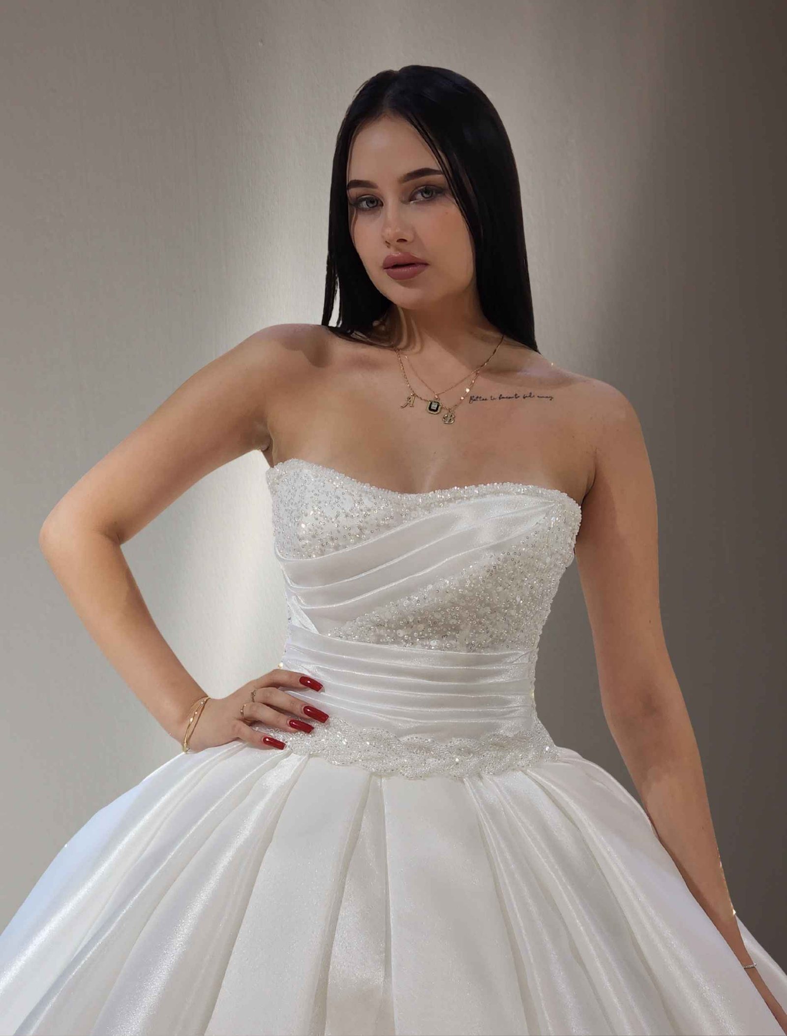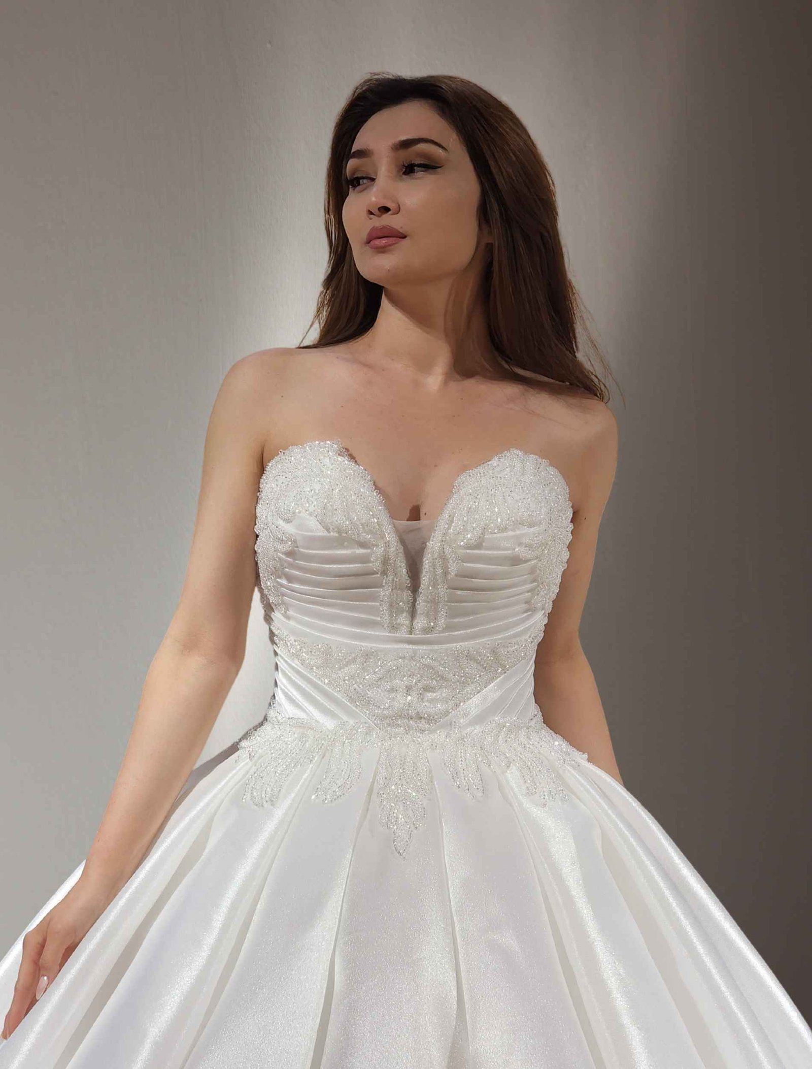 Off-Shoulder Satin Ball Gown Wedding Dress