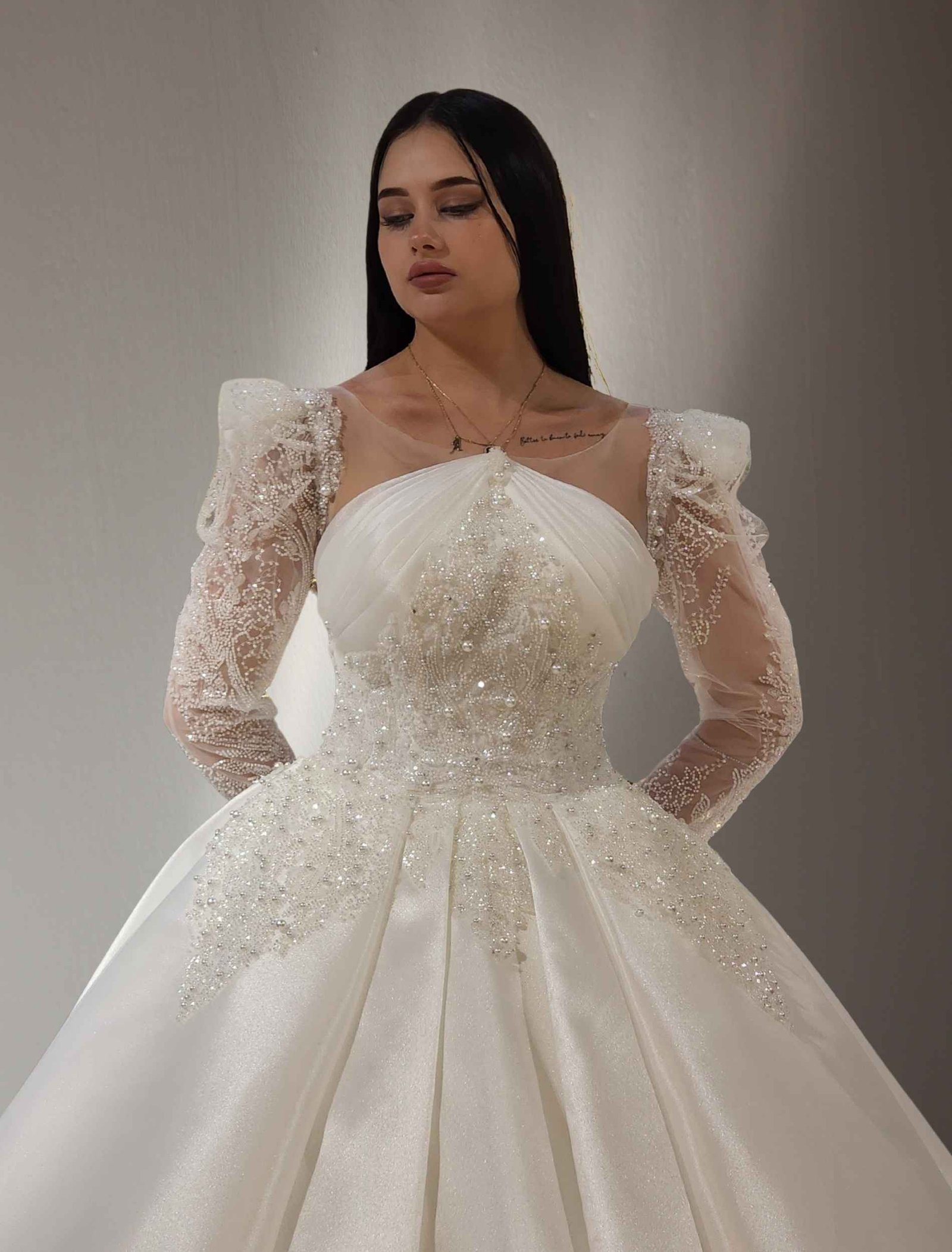 Off-Shoulder Ball Gown Wedding Dress with Long Sleeves
