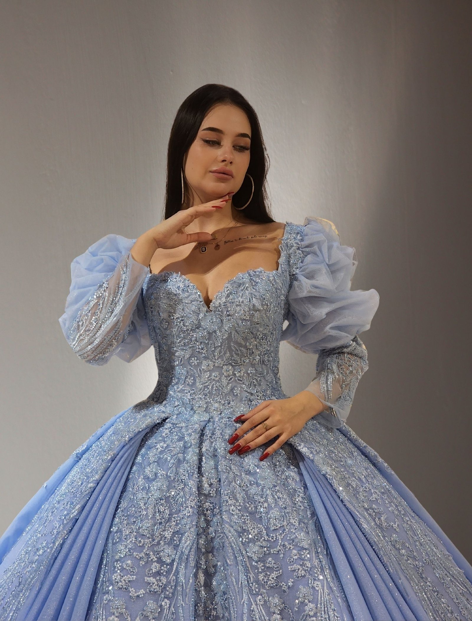puff sleeves Embroidered ball gown baby blue